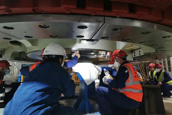 為了確保2號機(jī)組轉(zhuǎn)子按期吊裝,從開始組裝,文登項目部精心組織,超前策劃,克服疫情影響,合理安排人員爭分奪秒,加班加點組織施工,確保了轉(zhuǎn)子按期組裝完成并順利完成整體耐壓試驗,2號機(jī)組轉(zhuǎn)子磁極圓度、同心度、垂直度均滿足國家優(yōu)良標(biāo)準(zhǔn),每一道工序質(zhì)量均優(yōu)于行業(yè)標(biāo)準(zhǔn),達(dá)到廠家技術(shù)要求及國網(wǎng)新源WHS點優(yōu)良參數(shù)。