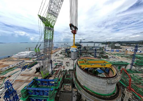 8月9日,我國自主三代核電華龍一號批量化工程——中核集團漳州核電2號機組反應(yīng)堆壓力容器順利吊裝就位。這是該機組繼三臺蒸汽發(fā)生器吊裝成功之后,主設(shè)備預(yù)引入工作再次取得的重大進(jìn)展,為后續(xù)內(nèi)穹頂?shù)跹b及主管道焊接創(chuàng)造了先決條件。