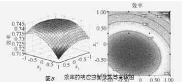 由于加工制造費用較高且進行試驗周期較長,為了慎重選擇試驗方案, 在投入制造和試驗之前本圖5效率的響應曲面及其等高線圖