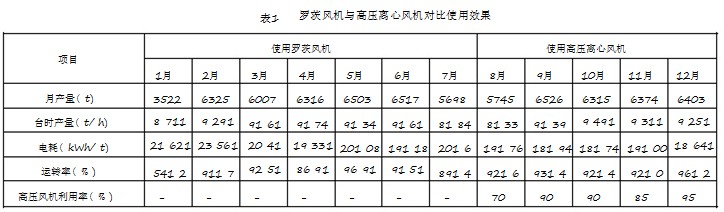 1.11 羅茨風(fēng)機(jī)與高壓離心風(fēng)機(jī)對比使用情況以 1995 年為例, 羅茨風(fēng)機(jī)與高壓離心風(fēng)機(jī)對比使用效果見表 1。