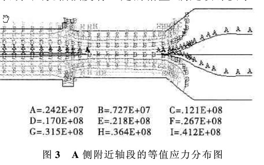 圖 3 A 側附近軸段的等值應力分布圖