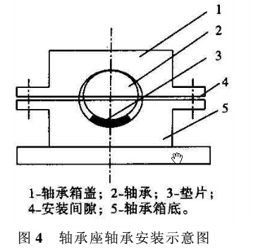 圖 4 軸承座軸承安裝示意圖整軸承座孔與軸承 間的配合間隙, 紫銅 片厚度約為 0. 6 mm, 見圖4。