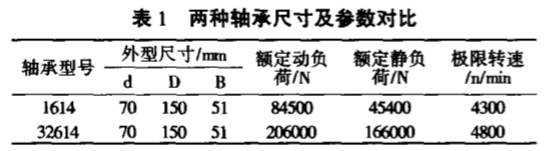 2 . 3 風(fēng)機(jī)葉輪動平衡原 因 風(fēng)機(jī)葉輪過一段時間要做動平衡校驗(yàn) , 但不能達(dá)到百分之百的理想平衡程度 , 總存在著一些不平 衡量 , 這些不平衡量要引起風(fēng)機(jī)的少量震動。 此時 風(fēng)機(jī)的實(shí)際動負(fù)荷要大于計(jì)算值而引起軸承失效 。 通過以上從三個方面的原 因分析 , 都會造成軸 承過早的失效 。 3 改進(jìn)措施 根據(jù)以上分析 , D1 50 風(fēng)機(jī)故障的主要 問題是軸 承的額定動載荷小 、 雙列軸承只有單列受力 、 和葉輪 的動不平衡引起的 。 要解決該間題的主要方法應(yīng)該 是改變現(xiàn)用軸承型號 。 新選軸承不僅在額定動負(fù)荷 上要求大于現(xiàn)用軸承 , 而且在外 型尺寸上要求與現(xiàn) 用軸承相符。 否則就要改變風(fēng)機(jī)葉輪軸的尺寸或是 改變軸承座尺寸 。 那樣就要花費(fèi)很多的改造費(fèi)用 。 通過查閱資料 , 我們選定 了新軸承的型號為 326 140 該軸承的特點(diǎn)是 : 額定動負(fù)荷大 , 極 限轉(zhuǎn)速高 , 允許 有較大的軸 向移動量 , 這個性能 可以克服上述溫差 造成的軸承單列受 力的情 況 。 使軸 承受 力情 況變 好 , 但是該軸承高速運(yùn)行時容易發(fā)熱 。 兩種軸承的外形尺寸和主要參數(shù)比較見表 1 。