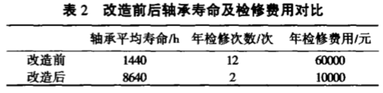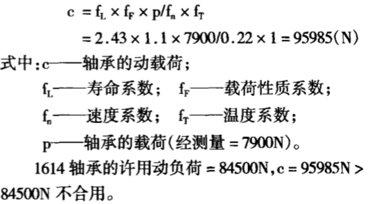 2 故障分析 通過對風(fēng)機(jī)故障進(jìn)行分析發(fā)現(xiàn) , 風(fēng)機(jī)故障是 由 于軸承點(diǎn)蝕和剝落造成 , 軸承型號為 1614 雙列調(diào)心 球軸承 , 國產(chǎn)軸承 在該風(fēng) 機(jī)上 的平均使 用壽命為 720 h , 后改為進(jìn) 口 軸承 , 其平均壽命為 144 0 h。 仍不 能滿足使用要求。 于是我們對影響風(fēng)機(jī)軸承使用壽 命和 出現(xiàn)的經(jīng)常性故障產(chǎn)生的原因從幾個方面做了 以下分析 :