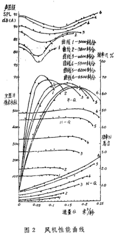 如 圖1所示, 離心風(fēng)機由直流 電機帶動, 可任意改變風(fēng)機轉(zhuǎn)速。用ND: 精密聲級計測定風(fēng)機聲壓級。傳聲器位于風(fēng)機吸入口中心線1米處 。 用 天 平 馬達測定功率, 用畢托 管測 流量, 用 U 型壓差計測定全壓 。