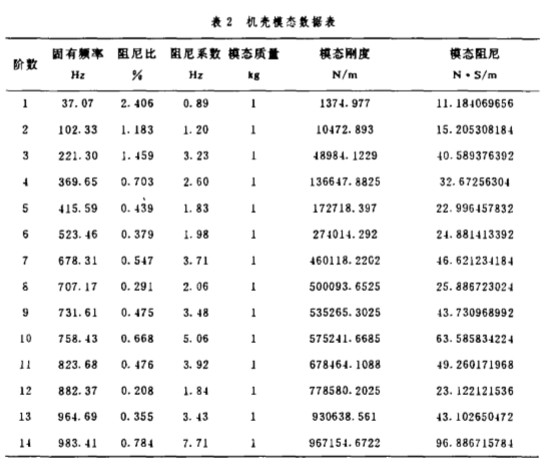 經(jīng) F盯 分析儀進(jìn) 行信號(hào)分析 , 得到 葉輪和機(jī) 殼的幅頻特性 曲線(xiàn) , 再經(jīng)計(jì)算機(jī) 進(jìn)行 曲線(xiàn)擬 合 , 得到葉輪和機(jī)殼的 各階模態(tài)參數(shù) , 如 表 1 和 表 2 所 示.