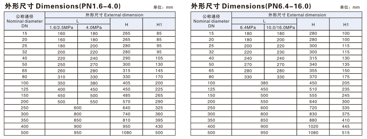 | 公稱壓力(Mpa) | 1.6 | 2.5 | 4.0 | 6.4 | 10.0 | 16.0 |