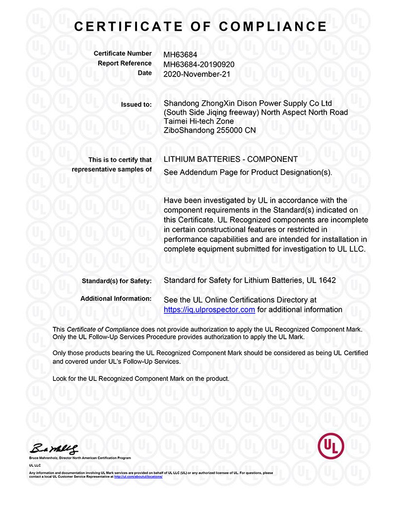 鋰離子電池廠家山東中信迪生電源有限公司(DISON)